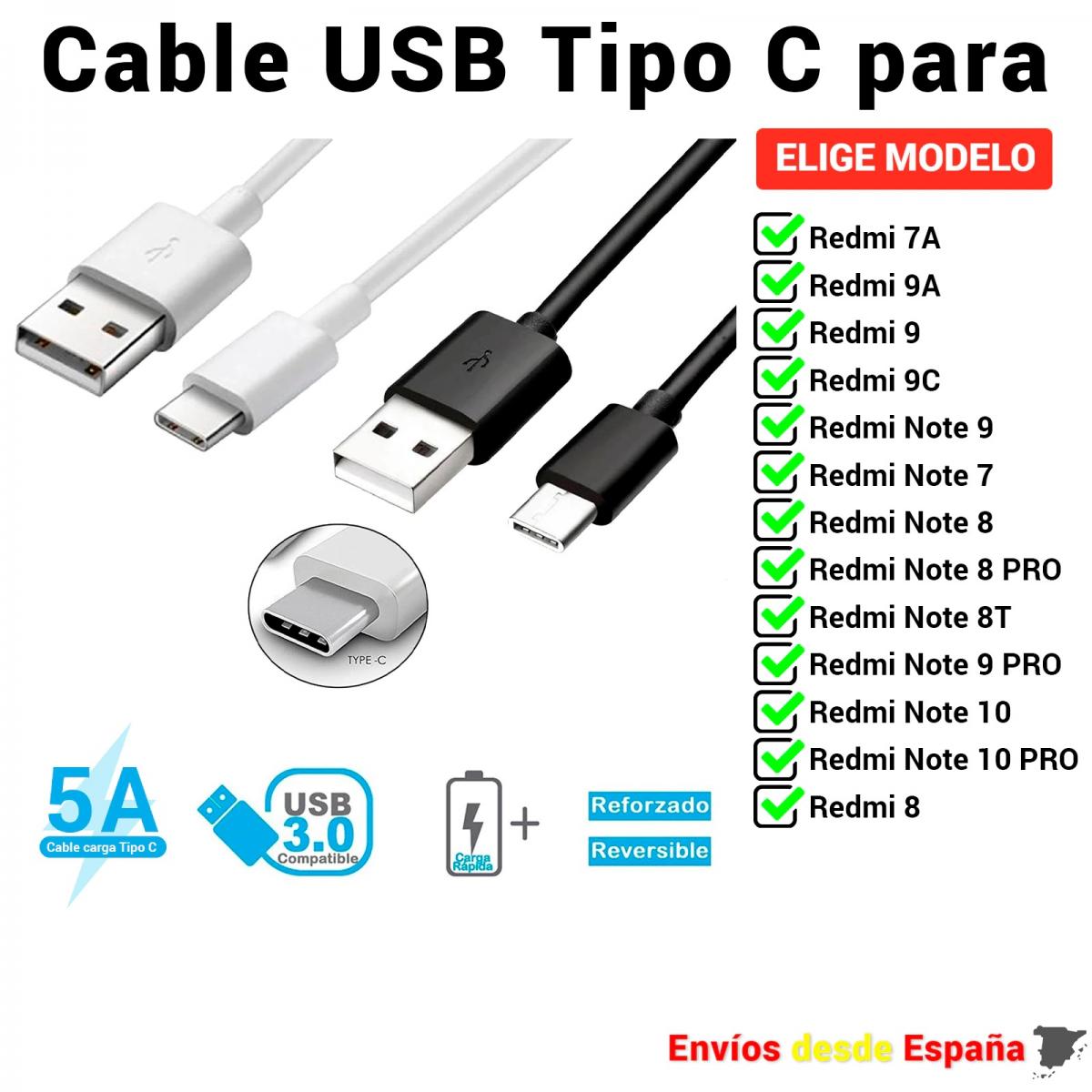 Cable USB Tipo C para Xiaomi Redmi 7A 8 8T 9 9A 9C 9T Note PRO