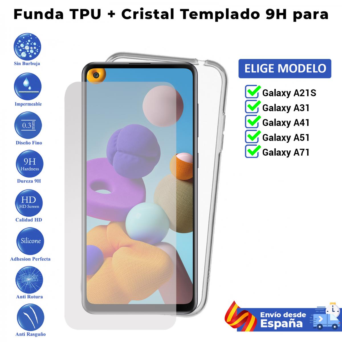 Funda y protector para Samsung Galaxy A21S A31 A41 A51 A71. Carcasa y cristal templado de pantalla transparente para móvil.
