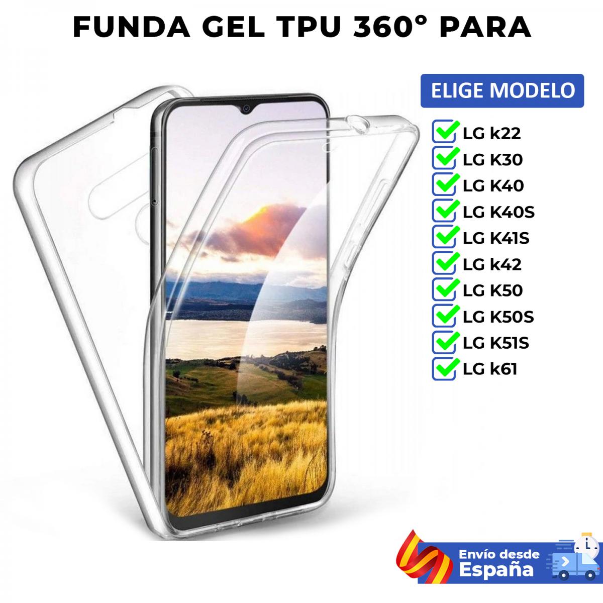 Funda TPU 360 para LG k22 K30 K40 K40S K41S k42 K50 K50S K51S k61. Carcasa completa doble cara transparente de silicona movil