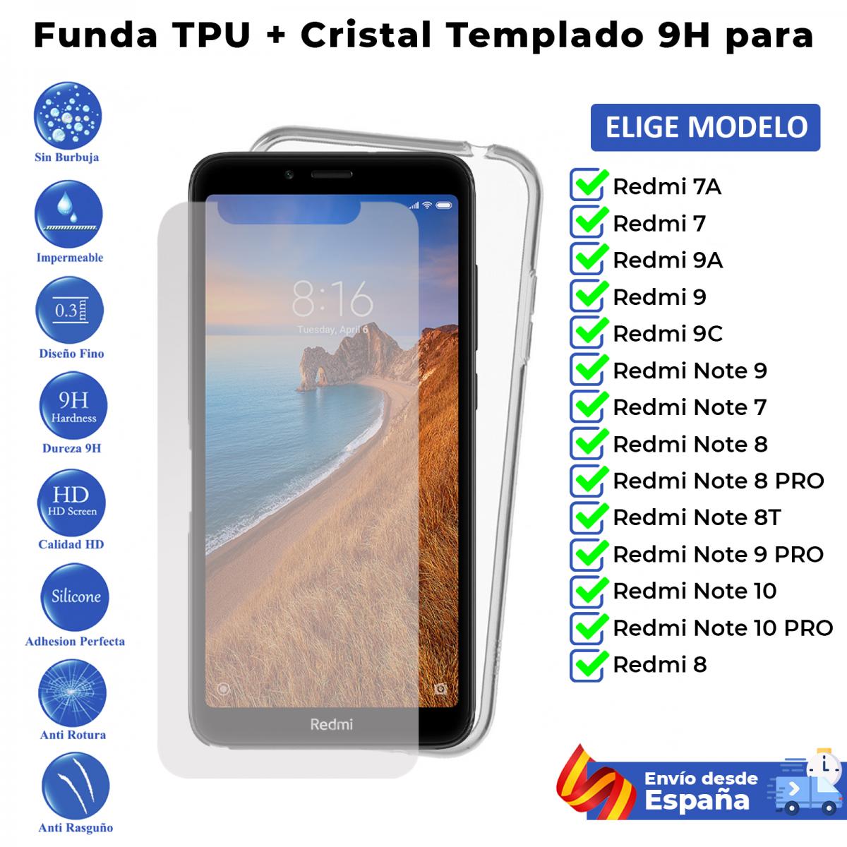 Funda y protector para Xiaomi Redmi Note 7 7A 8 8A 8T 9 9A 9C 9T 9S 10 pro. Cristal templado y protector para movil
