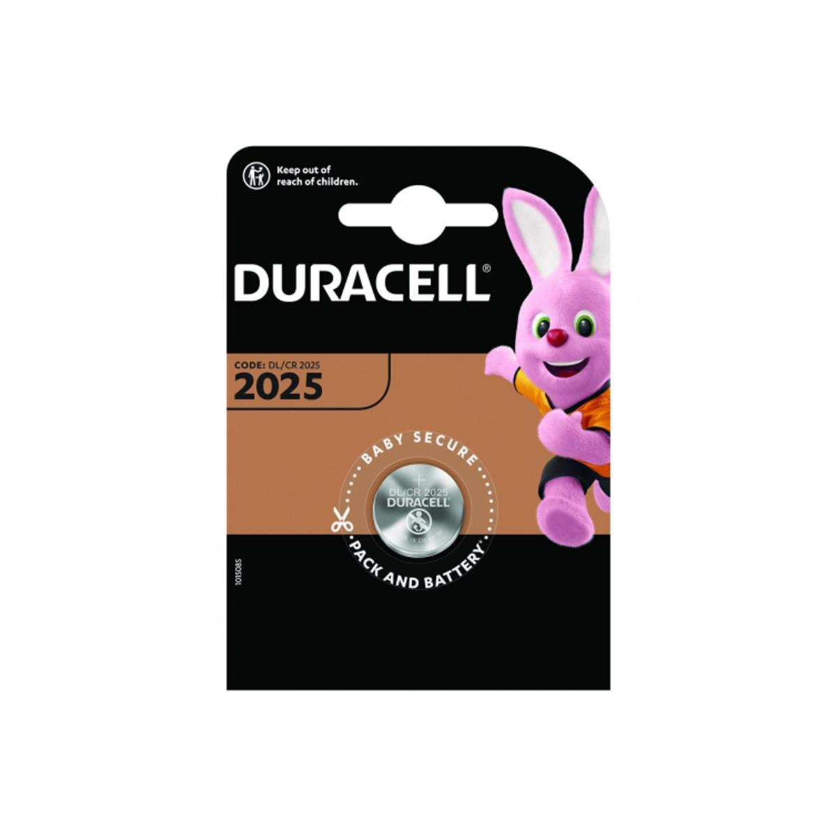 Las pilas especiales Duracell de botón de litio 2025 están fabricadas con litio de alta pureza y ofrecen hasta un 50 % más de potencia (respecto a la duración media mínima de la prueba estándar de potencia de servicio de la IEC para pilas de botón 2032, 2025 y 2016 de litio.