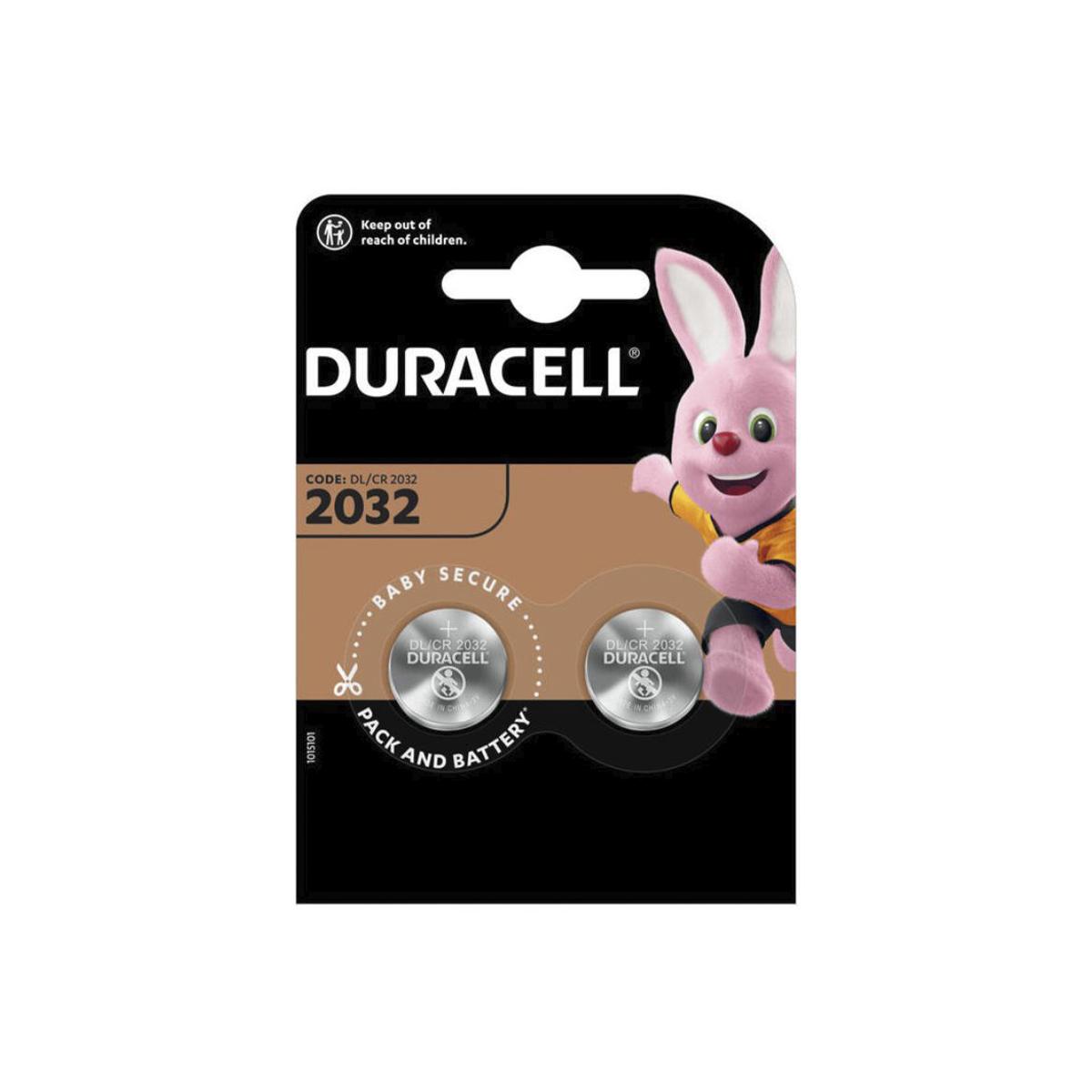 Las pilas especiales Duracell de botón de litio 2032 están fabricadas con litio de alta pureza y ofrecen hasta un 50 % más de potencia (respecto a la duración media mínima de la prueba estándar de potencia de servicio de la IEC para pilas de botón 2032, 2025 y 2016 de litio.