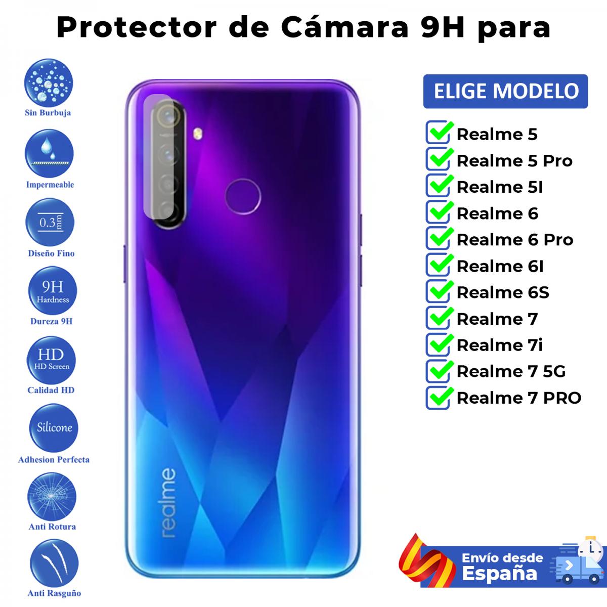 Protector de cámara para Realme 5 5I 6 6I 6S 7 7i 5G Pro. Vidrio para lente de cristal templado transparente para movil