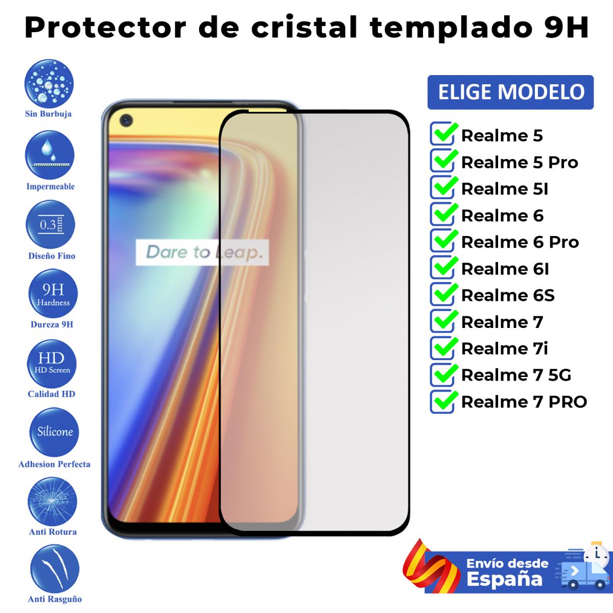Protector de pantalla Completo 3D para Realme 5 5I 6 6I 6S 7 7i 5G Pro. Cristal templado Negro para movil. Elige modelo
